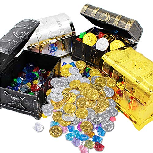 Materiale: Monete pirata in plastica sono fatti di plastica resistente, molto bella e bella. Le gemme sono realizzate in vetro acrilico di alta qualità con colori vivaci.