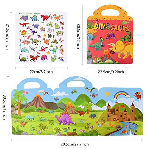 FORMIZON 4 Pezzi Montessori Libro Tranquillo, Piccoli Libri con Adesivi, Oceano Animale di Dinosauro Etichetta Essere Attaccato a Libri di Adesivi, Giocattoli Adesivi per Bambini da 2 a 6 Anni