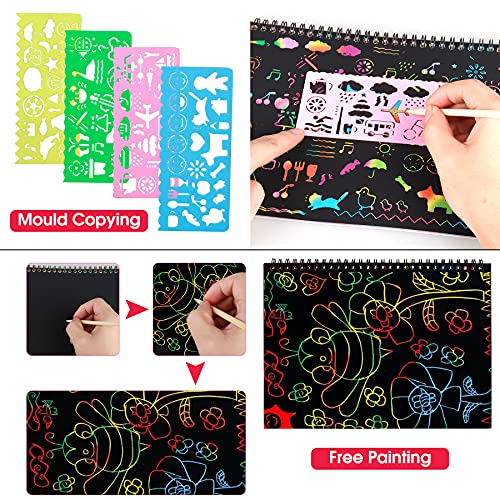 FORMIZON Scratch Art Fogli da Disegno, Arcobaleno Scratch Painting Paper Set, Set Di Carta per Graffi Artistici, Scratch Art per Bambini, Gratta E Vinci Set per Disegni, Giochi E Scrittura