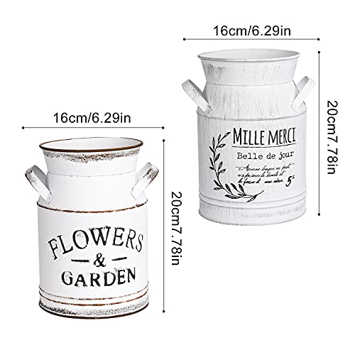 FORMIZON Vasi Vintage per Fiori, Brocca in Metallo Vaso Shabby, Brocche Decorative Vaso, Rustico Shabby Chic Vasi, Brocca per Latte in Metallo Vintage Vaso per Decorazione da Tavolo (2Pezzi)