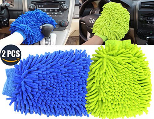 ForNeat Ultimate Car Wash Mitt - Confezione da 2 Microfibra Premium Scratch-Free Wash Mitt Ultra-Morbida, a Due Lati, Assorbente Eccellente (Azzurro + Verde)