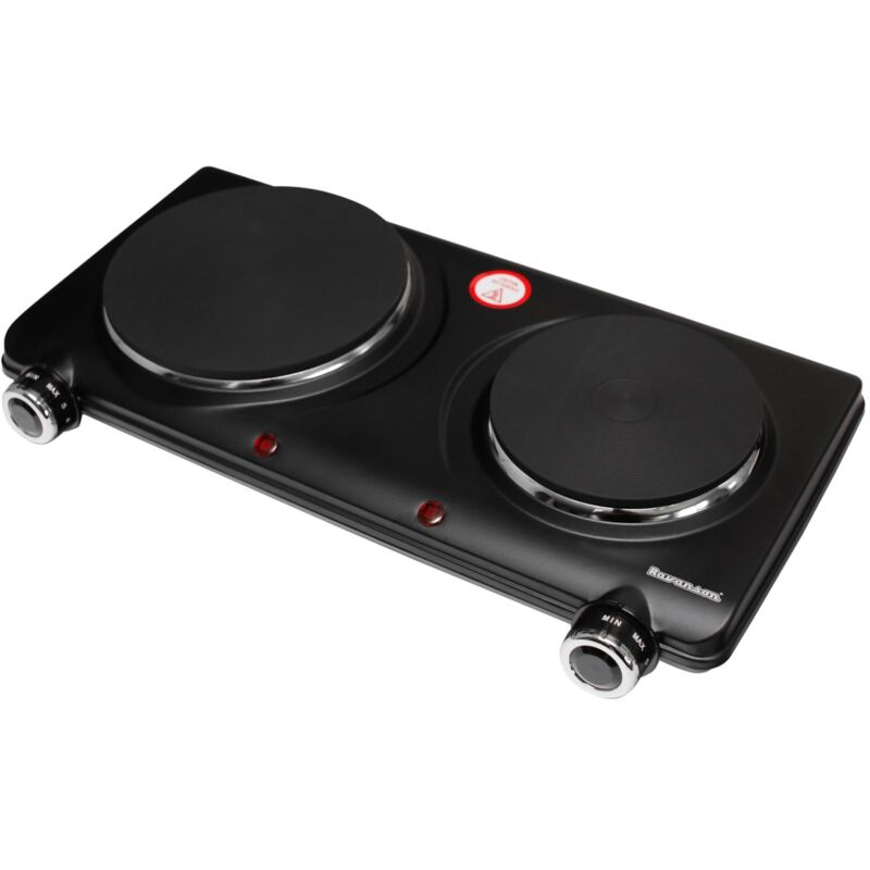 Design Colore del prodotto:Nero Numero di zone di cottura:2 zone Materiale: Tecnopolimero, Metallo Termostato regolabile: Sì Tipo piano cottura: Elettrico Piedini antiscivolo: Sì Diametro zona cottura 1: 160 mm Forma zona cottura normale:Rotonda Diametro zona cottura 2:130 mm Peso & dimensioni Larghezza:420 mm Peso:2,7 kg Profondità:220 mm Altezza:80 mm Prestazioni Potenza:2250 W Ergonomia Posizione di controllo:Frontale Display integrato:No Tipo di controllo:Rotante Spia luminosa: sì Protezione da surriscaldamento: sì