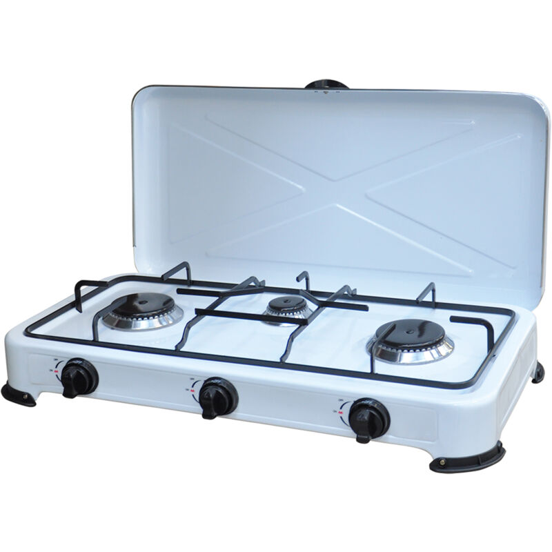 Bruciatore in acciaio inox a potenza elevata. Struttura in acciaio smaltato. Adatto per uso casalingo, campeggi, pic nic e tempo libero. Con piedini antisdrucciolo. Potenza 2,9 kw.