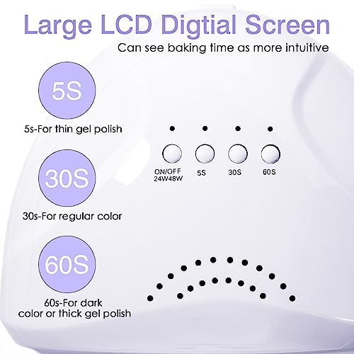 Fornetto Unghie LED Professionale 48W - Lampada UV per Asciugare Smalto Semipermanente - Sensore Avvio Automatico, 3 Timer Impostabili (5S, 30S, 60S) - Perfetto per Manicure e Pedicure