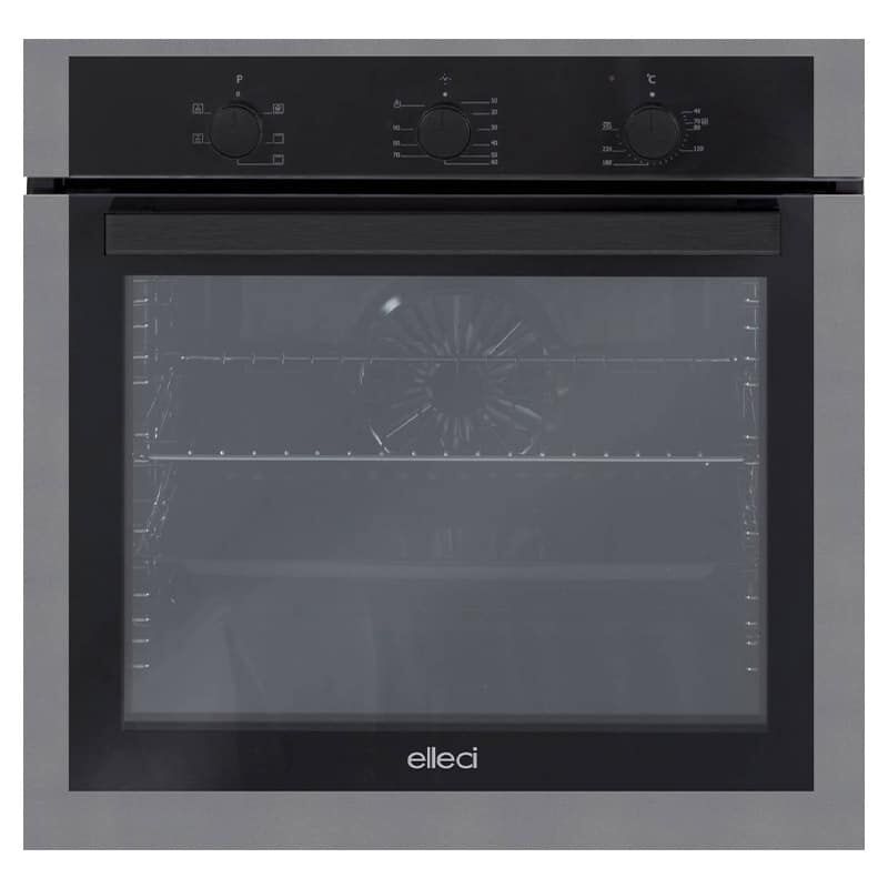 Caratteristiche: Tipologia: Forno Elettrico Multifunzione 6 Funzioni Linea: Style Finitura: Granitek Colorazione: 48 Grigio Cemento Capacità: 80 Litri Classe Energetica: A Temperatura massima: 250°C Dimensioni: 595 x 595 x 565 mm Profondità porta aperta: 480 mm Carico elettrico Totale: 2300W Tensione: 220v Manopole: Flat nere Ventilazione radiale di raffreddamento porta: Sì Funzione Pulizia Steam Clean: No Controporta full vetro con vetro removibile: Sì Cavità con smalto Easy Clean: Sì Accessori inclusi: Griglia e leccarda
