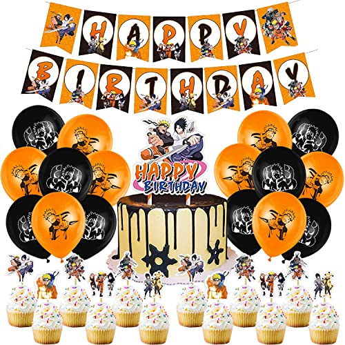Forniture per Feste 48 pcs, Decorazioni di Compleanno, Palloncini Decorazioni, Striscioni di Buon Compleanno, Cucake Topper, Toppers per Torta per Bambini Decorazione per Feste di Anime