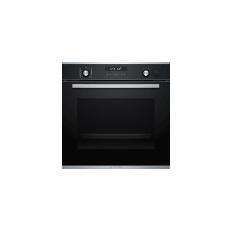Bosch Serie 6 HRT278BS1. Dimensione del forno: Media, Tipo di forno: Forno elettrico, Capacità interna forno totale: 71 L. Posizionamento dell'apparecchio: Da incasso, Colore del prodotto: Nero, Acciaio inossidabile, Tipo di controllo: Manopola. Tipo di orologio: Elettronico. Classe efficienza energetica: A, Consumo energetico (convenzionale): 0,99 kWh, Consumo energetico (convezione forzata): 0,81 kWh. Tipo di lampada: Alogena Cottura uniforme - fino a 3 livelli: Questa funzione permette una distribuzione del calore rapida ed uniforme all'interno del forno, rendendo possibile la cottura simultanea su tre livelli. Piatti dolci e salati possono essere cotti nello stesso momento senza mischiare i sapori. Finalmente c'è qualcuno a cui piace pulire. Pulire il forno manualmente non è semplice e può richiedere molto tempo. Grazie ai nostri forni con la funzione di autopulizia Pirolisi, puoi dire addio a questa operazione. Senza l'utilizzo di prodotti chimici. Basterà premere Avvio ed il