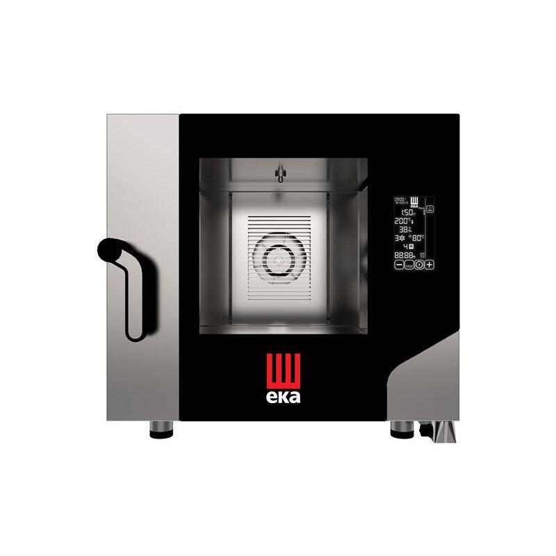 Una serie di moderni forni combinati a vapore MILLENIAL BLACK MASK GASTRO. Il nome non è casuale: dopo aver spento il fornello, il pannello comandi nero scompare completamente nella cornice nera della porta del fornello - Il pannello comandi elettronico touch da 7 pollici consente l'impostazione comoda e precisa dei parametri di cottura impostati - MILLENIAL BLACK Le stufe MASK hanno due soluzioni brevettate: Airflowlogic™ - questa è una soluzione brevettata e innovativa che consiste in una riprogettazione completa del deflettore (copriventola). L'effetto di questo trattamento è quello di migliorare la circolazione del flusso d'aria Humilogic™, un nuovo sistema di umidificazione brevettato che fornisce acqua direttamente dal ventilatore. Garantisce un elevato livello di umidità e un consumo di acqua notevolmente inferiore FUNZIONI PIÙ IMPORTANTI: Sonda a 1 punto Grazie alla sonda, il forno è in grado di controllare e mantenere costantemente la temperatura indicata all'interno del