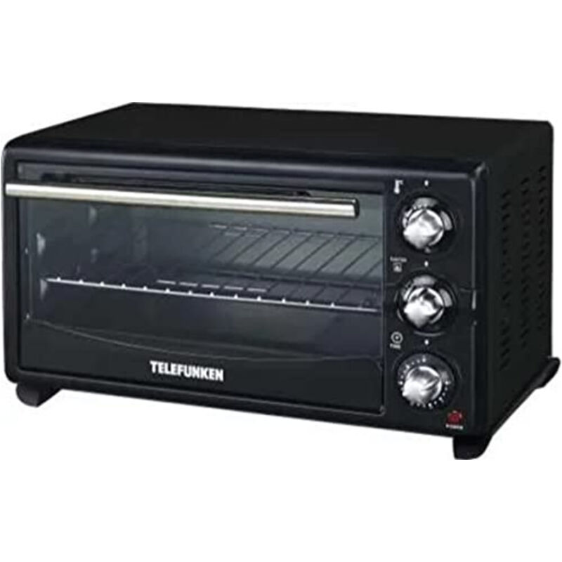 Forno Elettrico Telefunken Potenza 1380w, AC220-240V / 50-60Hz. Capacità 18lt Timer 60minuti 4 fasi di riscaldamento Off / calore superiore / calore inferiore / calore superiore e inferiore Termostato 100°C - 250°C Accessori Griglia in acciaio inox, Leccarda in alluminio, pinza per teglia Spia luminosa Vetro termoisolante Inserti in acciaio inox