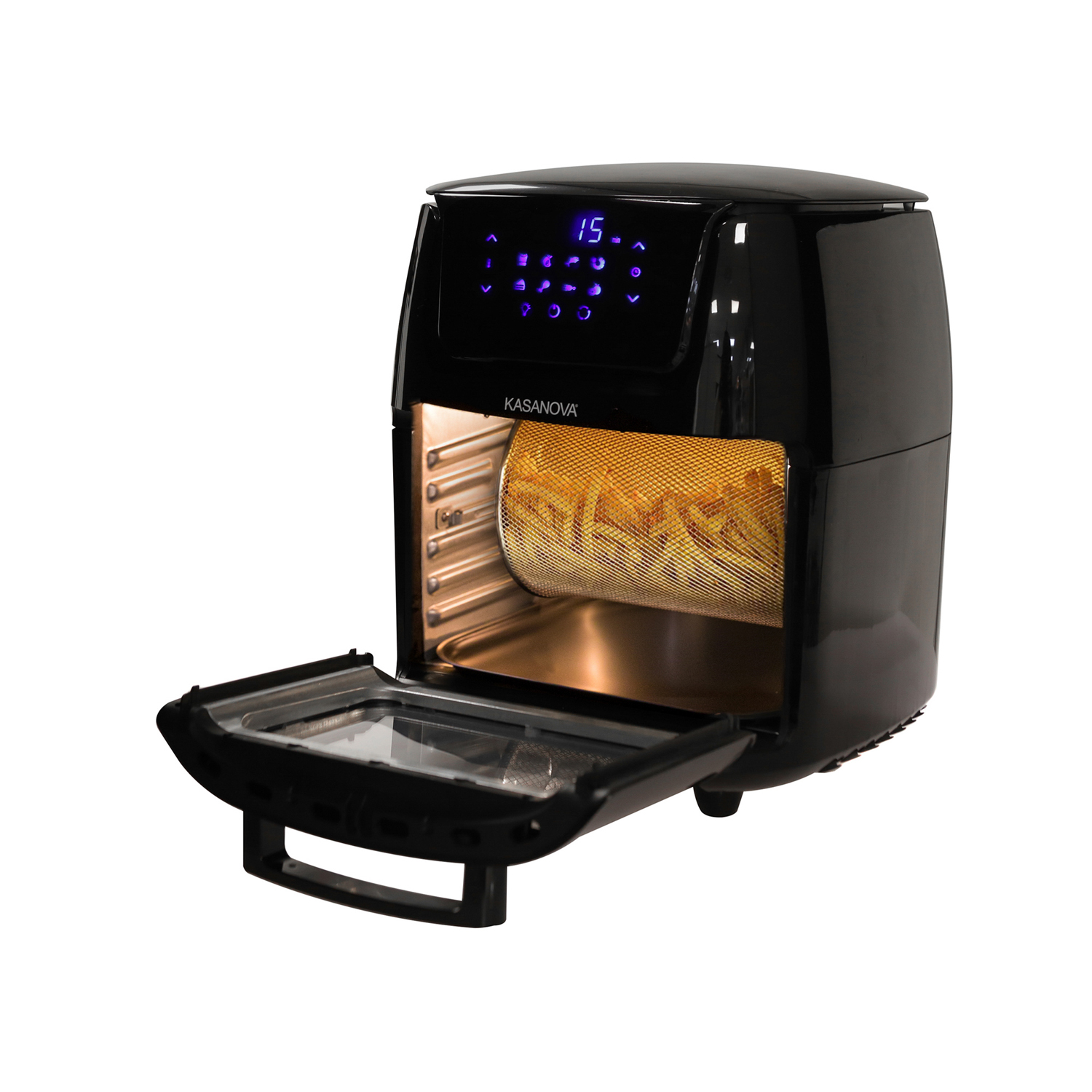 Con il forno friggitrice ad aria digitale puoi preparare gustose e croccanti pietanze senza o con poco olio in pochi minuti, risparmiando tempo ed energia. Grazie alla tecnologia di circolazione rapida di aria ad alta temperatura fino a 200°, i tuoi cibi si cuociono velocemente, rimanendo croccanti fuori e morbidi dentro. Con 8 programmi selezionabili dal display digitale, puoi impostare senza fatica tempo e temperatura di cottura a seconda di quello che vuoi cucinare: patatine, carni, pesci ma anche pane e dolci. Con indicatore luminoso e timer fino a 60 minuti, puoi utilizzare il forno friggitrice anche per scongelare le pietanze. Con capienza di 12 lt, puoi cucinare grandi quantità di cibo per tutta la famiglia. Superaccessoriato, include 2 griglie per cucinare carne, torte, verdure, pane e pizze, 1 cestello in rete rotante per tutti i tuoi fritti, 1 set di spiedini, 1 girarrosto e 1 teglia estraibile. Con spegnimento automatico, è facile e sicuro da usare. 1800 W.