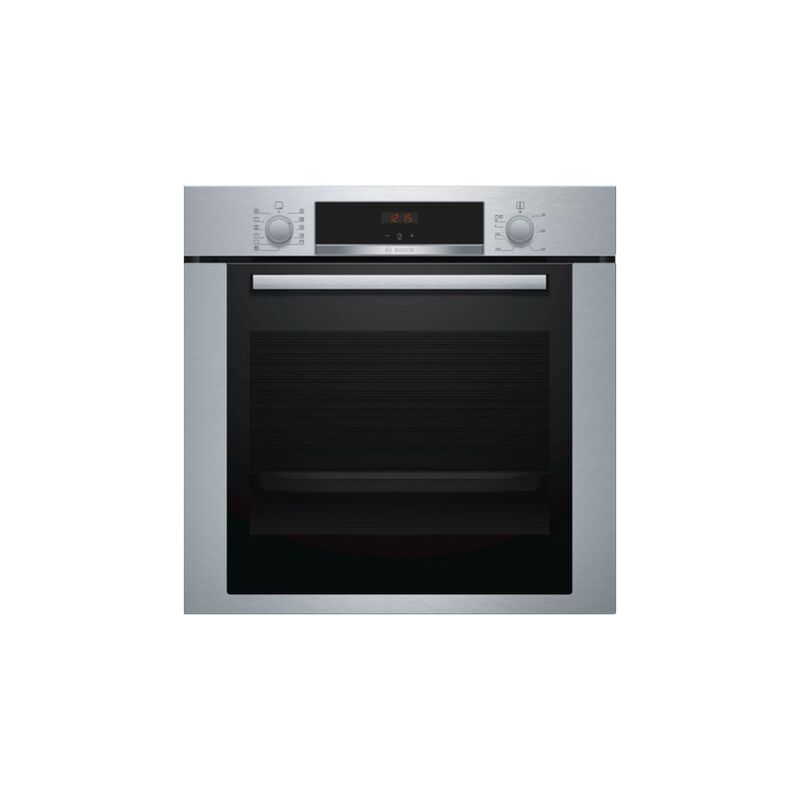 Forno da incasso Bosch HBA374BR0J. Facile da usare, la funzione pirolisi può essere impostata su 3 tempi diversi a seconda di quanto è sporco il forno (75, 90 o 120 minuti). La modalità di pulizia più efficace arriva fino a 475°C. Al termine del ciclo di pulizia i residui di cenere devono essere rimossi dall'intero forno. Ricordati di rimuovere tutti gli elementi nel tuo forno prima di iniziare la pirolisi Leggi facilmente lo schermo del tuo forno. Usa il programma automatico! Goditi 10 ricette preprogrammate e salvate. Seleziona il programma desiderato, quindi il peso del tuo piatto. Il tuo forno si occupa del resto. Tipo di prodotto: lavastoviglie. Tipo di pulizia: Pirolisi. Volume 71 l. Schermo LED. Porta interna completamente in vetro. 7 modalità di cottura: aria forzata 3D, convezione naturale, grill ad aria forzata, grill ad ampia superficie, posizione pizza, calore inferiore, calore superiore e inferiore, aria forzata morbida. 10 programmi automatici. Impostazione della