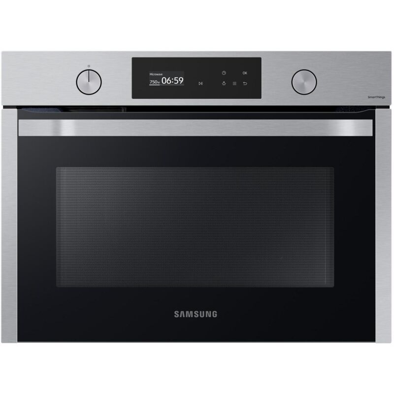 Samsung NQ50A6139BS. Posizionamento dell'apparecchio: Da incasso Tipo di prodotto: Solo microonde Capacità interna: 50 L. Tipi di cottura: Pizza. Tipo di lampada: Alogena Potenza lampadina: 40 W. Carico di collegamento: 1650 W Tensione di ingresso AC: 230 V Frequenza di ingresso AC: 50 Hz. Larghezza: 595 mm Profondità: 570 mm Altezza: 456 mmLa rapidità e il gusto che ami Cucina i tuoi piatti in modo rapido e uniforme e controlla la cottura senza fare sforzi. Questo sistema associa al tradizionale forno a convenzione un microonde. Il display LCD ti permette di cucinare in modo intuitivo oppure puoi usare un assistente vocale* tipo Bixby di Samsung**. E grazie a SmartThings Cooking*** puoi vivere un'esperienza unica in cucina. Cottura rapida e uniforme per i tuoi piatti ogni giorno Microonde Cucina o riscalda gli alimenti in modo più rapido e uniforme utilizzando la modalità microonde. Il forno a microonde con agitatore ti dà la flessibilità per preparare piatti semplici e diversi ogni