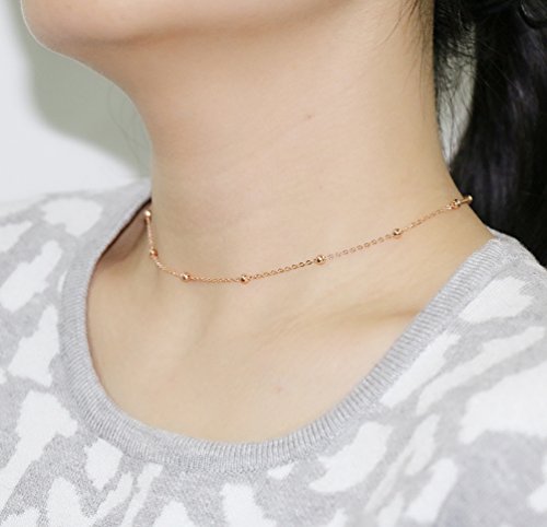 FOROLAV donna in argento Sterling 925 con perline cavo catena collana girocollo regolabile, colore: Rose Gold Color, cod. A-1331
