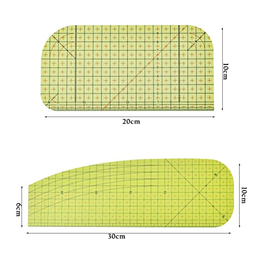 Leggeri e di dimensioni compatte: questi strumenti di cucito in 2 diverse forme e dimensioni sono ideali per la tua applicazione. Quello grande misura ca. 30 cm / 11,8 '' * 10 cm / 3,9 '', mentre quello piccolo misura circa 20 cm / 7,9 '' * 10 cm / 3,9 ''. Ed è leggero, facile da riporre e trasportare. NOTA: questi righelli sono graduati in centimetri, non in pollici.