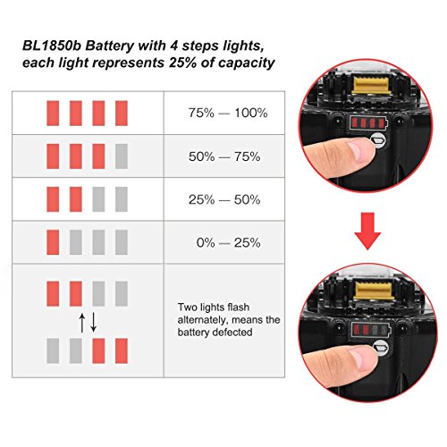 Modelli di batteria e utensili compatibili può sostituire la Makita batteria 18v 5ah originale BL1850B, compatibile per Makita 18V Utensile elettrico a batteria dmr104w, dtw285z, RMB100,BMR107,LXRM02,LXRM03,BMR103,BMR102,BMR104,etc.