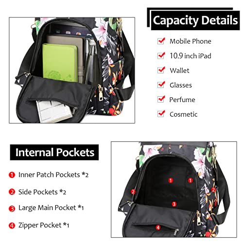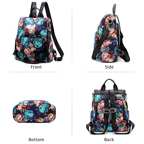 FORRICA Borsa Zaino Donna Stampa di Moda Borsa a Tracolla Antifurto Zainetto Casual Tessuto Oxford Ragazza Scuola Daypacks Zaino Viaggio Fiore B