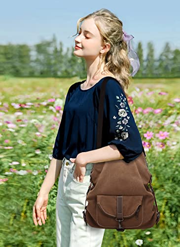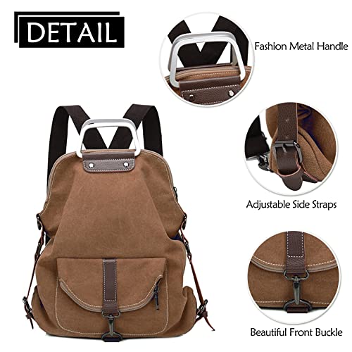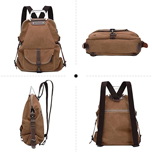 FORRICA Zaino Donna Casuale Zaino Tela Zainetto Ragazze Adolescenti Borsa a Tracolla Multifunzione Borsa Messenger Borse a Spalla per Scuola Shopping Viaggio Marrone