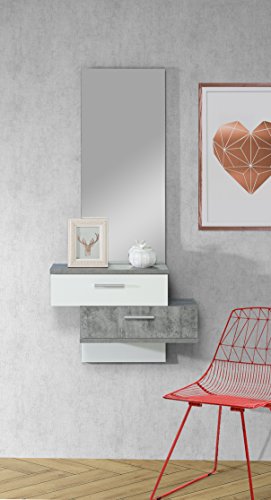 Forte Appendiabiti Compatto, Legno, Effetto Cemento Combinato con Bianco, 75.406 x 25.6 x 157 cm