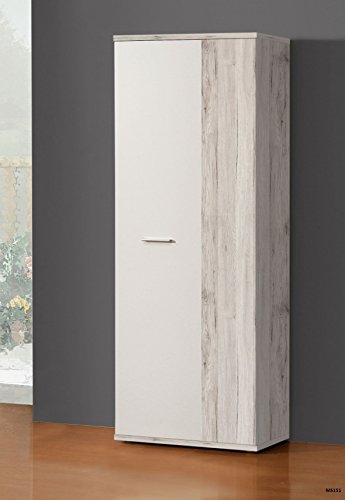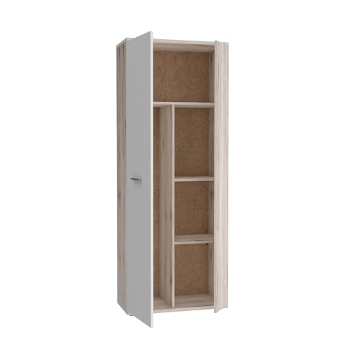 Forte Net106 Armadio Multiuso, Legno ingegnerizzato Metallo Plastica, Rovere sabbiato e Bianco, 68,90 x 34,79 x 179,1 cm