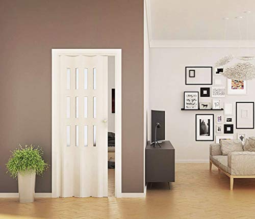 Forte: Porta a Soffietto Giulia in PVC, Resistente agli urti, Riducibile, Elevata stabilità, Kit completo, L88,5 x H214, Vetro satinato, Bianco