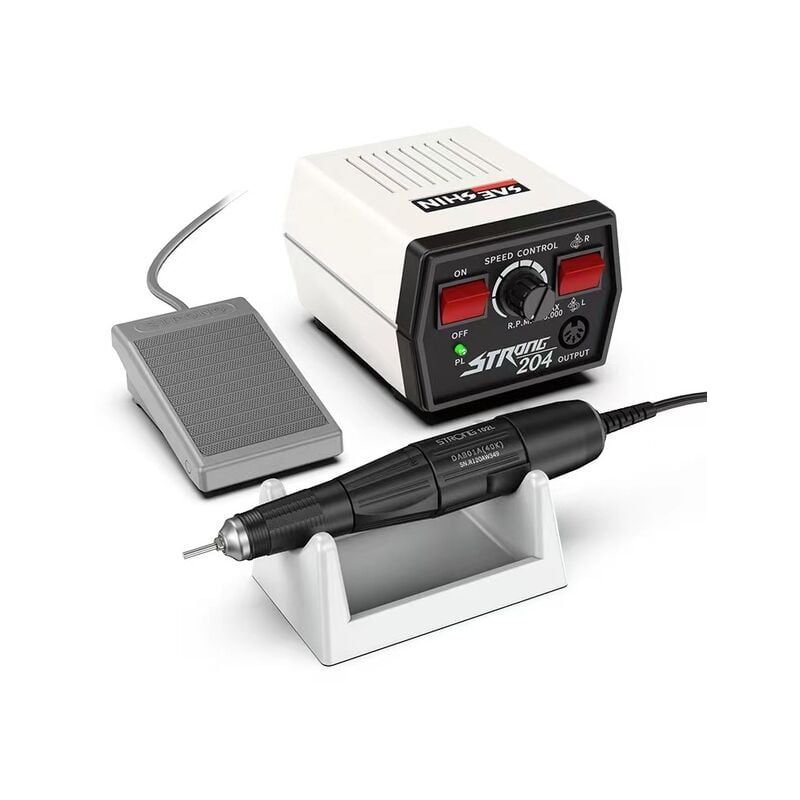 SpecificaTipo di articolo: trapano elettrico per Manicure e accessorioMateriale: ABS manicureVelocità di rotazione: 0-35000RPMTensione: 220V 50 ~ 60Hz (non può adattarsi a 110V)Spina: spina di UEPotenza: 65WUscita: DC 0-32V 0.5AFusibile: 1A(220V)Colore: come mostrato nella fotoManipolo peso: 250gPeso della macchina principale: 1275gPrincipale Formato Della Macchina:12.5*9.5*8.5 centimetri/4.9*3.7 * 3.3inIl prodotto IncludeTrapano elettrico per unghie 1*220V1 * manipolo1 * Interruttore A pedaleSupporto in silicone per manipolo 1 *1 * manuale utente (inglese)1 * scatolaCaratteristiche:1. Manico più grande:Di alta precisione, lunga vita. Ancora costante anche di lavoro ad alta velocità. ASSENZA di vibrazioni e basso rumore.2. Foot pedaleNon c' è bisogno di premere il tasto di accensione interruttore. Un pedale opzionale è incluso per la possibilità di alimentare la macchina on o off per le mani uso gratuito.3. Lucidatrice potabile:Dotato di meccanismo di caricamento rapido della testa