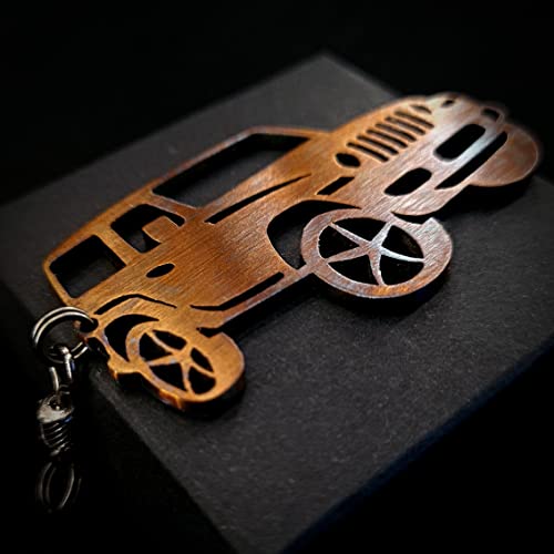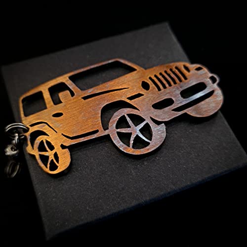 FORTILLO Fatto a mano portachiavi compatibile con Jeep Wrangler (Acciaio bluito)