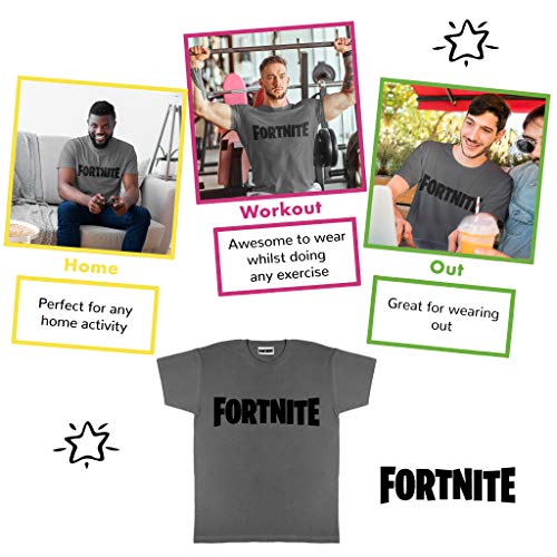 Fortnite Crew Neck T-Shirt for Men, Text Logo Print, 100% Cotton, Official Merchandise Magliette alla Moda, Carbone, XXL Uomo