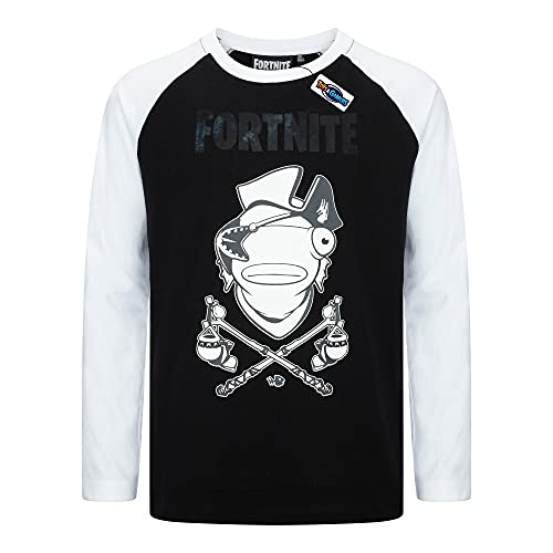 FORTNITE - Maglietta a maniche lunghe con bacchette di pesce, per ragazzi e ragazze, misura 140, 152, 164, 176, 10, 12, 14, 16 anni, colore: Nero/Bianco, Nero, 14 anni