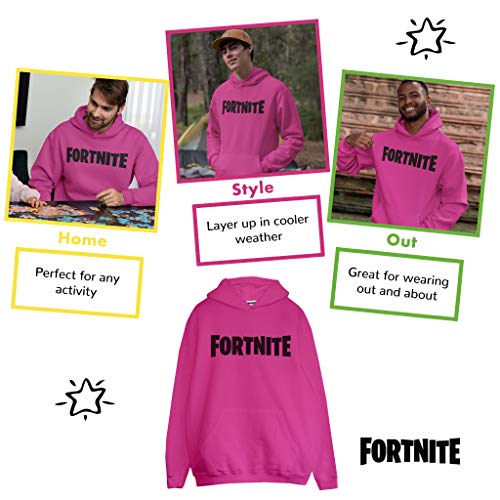 Fortnite Text Logo Felpa con Cappuccio Pullover, Uomo, S-5XL, Rosa, Offizielle Ware