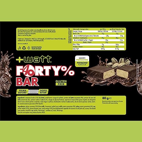Forty% Bar - Barretta Proteica a Base di Proteine del Latte - Favorisce il Recupero Muscolare - Formato: BOX 80 g x 20 Barrette - Gusto: Pistacchio