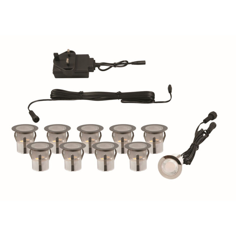 Forum Aubin Confezione da 10 faretti da incasso a terra a LED per esterni da 6000 K, nichel satinato IP67 | Finitura: nichel satinato | Materiale: acciaio inossidabile | Grado di protezione IP: IP67 | Altezza: 20 cm | Larghezza: 3 cm | Profondità: 3 cm | Tipo di lampada: LED integrato | Kelvin: 6000K | Lumen: 80lm | Peso: 0,42 kg | Potenza (massima): 5 W