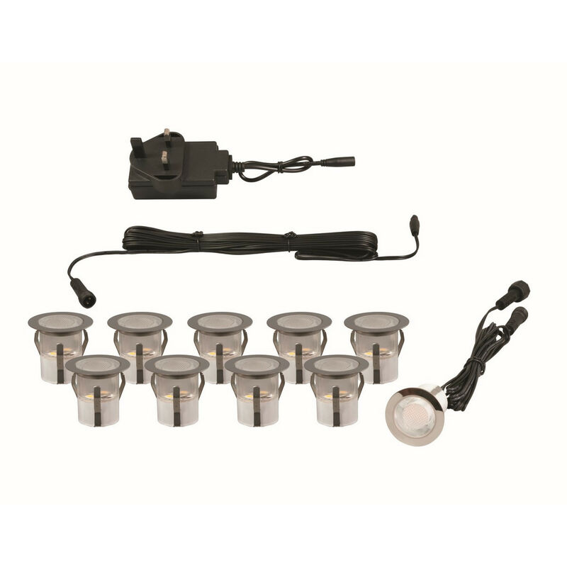 Forum Aubin Confezione da 10 faretti da incasso a terra a LED per esterni da 3000 K, nichel satinato IP67 | Finitura: nichel satinato | Materiale: acciaio inossidabile | Grado di protezione IP: IP67 | Altezza: 20 cm | Larghezza: 3 cm | Profondità: 3 cm | Tipo di lampada: LED integrato | Kelvin: 3000K | Lumen: 80lm | Peso: 0,42 kg | Potenza (massima): 5 W