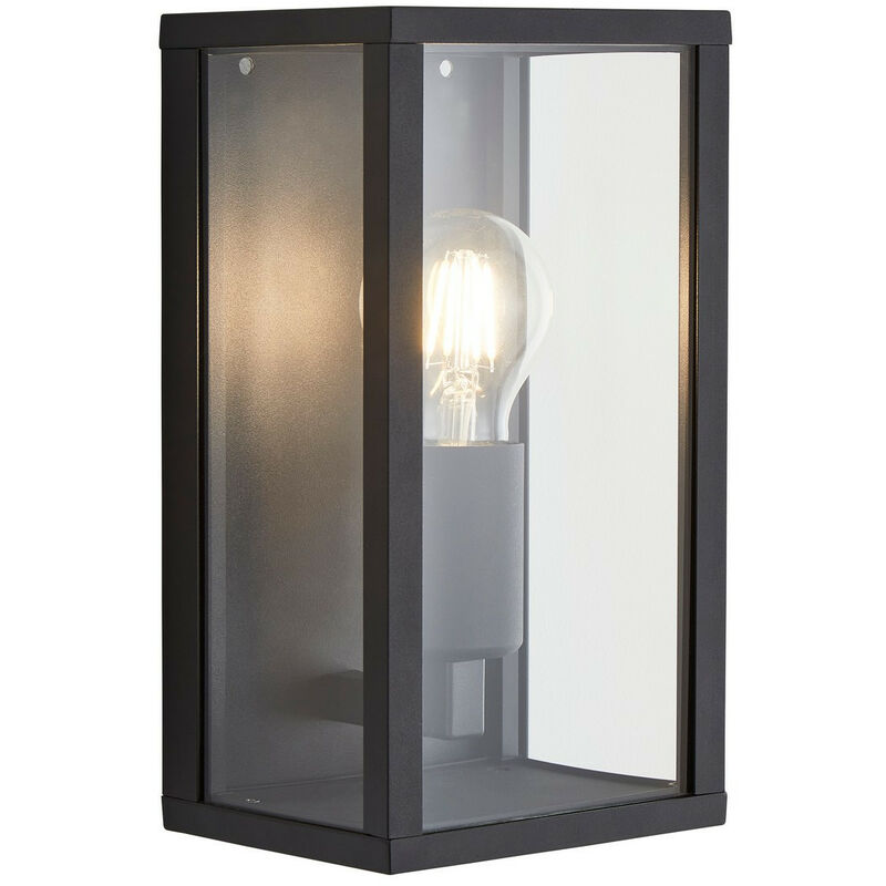 Forum Chinon Lanterna da parete per esterno con pannello in vetro Nero opaco IP44 | Finitura: nero opaco | Materiale: alluminio/vetro DC | Grado di protezione IP: IP44 | Altezza: 26 cm | Larghezza: 13,6 cm | Profondità: 14 cm | Tipo di lampada: E27 | N. di lampade: 1 | Peso: 1,42 kg | Potenza (massima): 10 W