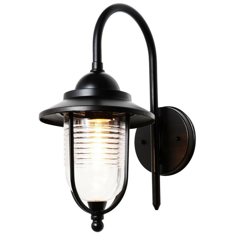 Forum Eris Lanterna da Parete per Esterno Fisherman Nera IP44 | Finitura: nera | Materiale: acciaio/policarbonato | Grado di protezione IP: IP44 | Altezza: 37 cm | Larghezza: 18 cm | Profondità: 27 cm | Tipo di lampada: E27 | N. di lampade: 1 | Peso: 0,7 kg | Potenza (massima): 60 W