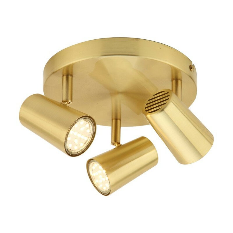 Forum Harvey Cluster di faretti da soffitto a 3 luci in ottone satinato | Finitura: ottone satinato | Materiale: alluminio+acciaio | Grado di protezione IP: IP20 | Altezza: 12 cm | Larghezza: 28 cm | Profondità: 28 cm | Tipo di lampada: GU10 | Numero di lampade: 3 | Peso: 0,62 kg | Potenza (massima): 35 W