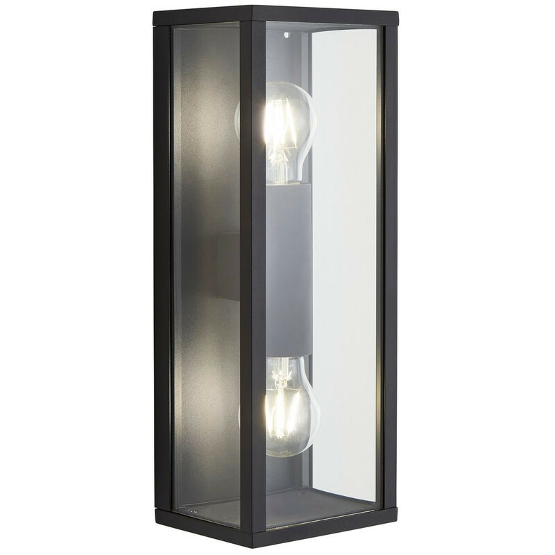 Forum Chinon Lanterna da Parete per Esterno Pannello in Vetro a 2 Luci Nero Opaco IP44 | Finitura: nero opaco | Materiale: alluminio/vetro DC | Grado di protezione IP: IP44 | Altezza: 38 cm | Larghezza: 13,6 cm | Profondità: 14 cm | Tipo di lampada: E27 | N. di lampade: 1 | Peso: 2 kg | Potenza (massima): 10 W