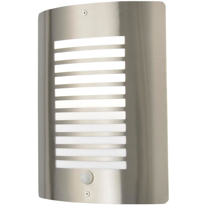 Forum Sigma Lampada da parete PIR per esterni in acciaio inox IP44 | Finitura: acciaio inossidabile | Materiale: acciaio inossidabile | Grado di protezione IP: IP44 | Altezza: 28 cm | Larghezza: 21 cm | Profondità: 9 cm | Tipo di lampada: E27 | N. di lampade: 1 | Peso: 0,66 kg | Potenza (massima): 60 W