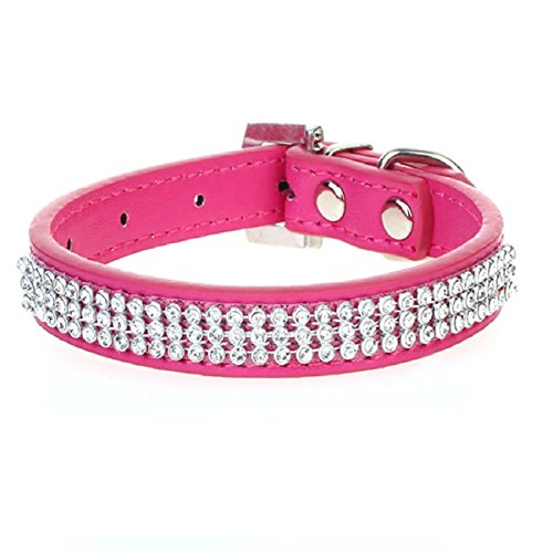 ForuMall Regolabile Cane Gatto Pet Collo Cinghia Cucciolo Collare Diamante Strass Fascia di Cristallo Bling Pu Pelle con Fibbia di Sicurezza (Diametro 8-11 cm)