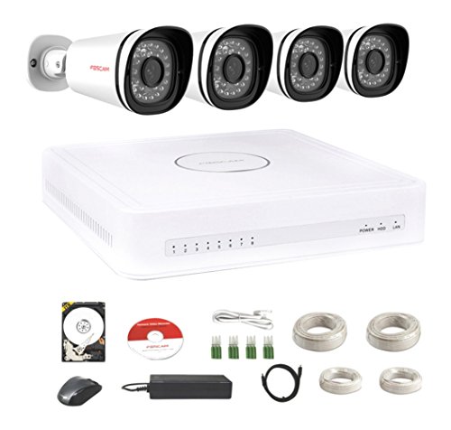 Foscam FN3108XE-B4-1T Kit Videosorveglianza con 4 Telecamere per Esterno, NVR con HDD 1 Tb, Bianco, 720 P