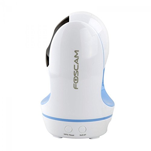 Foscam FosBaby BLUE Telecamera, HD 1.0 MP, H.264, 90°, Wireless, HD 720p, Visore Notturna, Rilevatore Movimenti e Suoni, Bianco/Blu