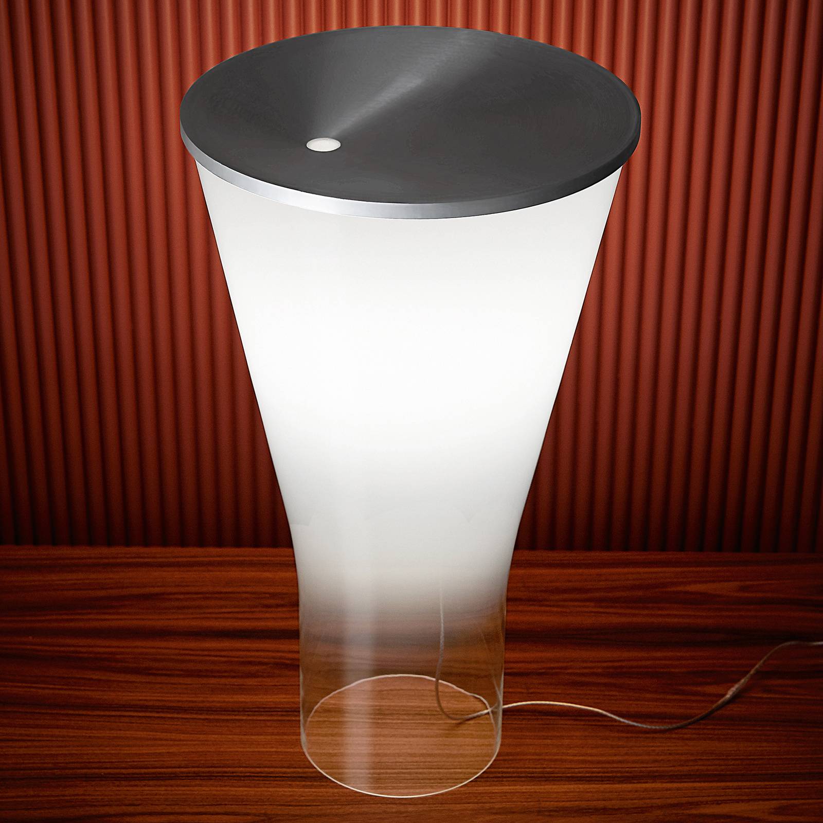 L'arte della soffiatura del vetro di Murano - Foscarini Lampada da tavolo LED Soffio con dimmer a sfioramento La lampada da tavolo LED Soffio è un apparecchio dalle dimensioni imponenti che tuttavia appare discreto e sobrio. Il suo diffusore, in vetro bianco che diventa sempre più trasparente verso il basso, è lavorato a mano e soffiato a bocca. Sulla parte superiore è fissato un coperchio rotondo in alluminio laccato, che funge anche da dimmer a sfioramento. Toccando un punto qualsiasi della piastra, è possibile selezionare uno dei tre livelli di luminosità o accendere e spegnere la lampada da tavolo. La tecnologia interna è dotata di LED ultramoderni e ad alta efficienza energetica, dimmerabili e protetti all'interno da un diffusore cilindrico in plastica. Tutto ciò non è visibile dall'esterno attraverso il vetro, il che conferisce alla lampada da tavolo LED Soffio un aspetto sofisticato. La luce, che viene emessa delicatamente attraverso il vetro, crea un'atmosfera piacevole che è facile e semplice da utilizzare grazie al dimmer a sfioramento. L'imponente design per Foscarini è stato creato dai due designer milanesi Ludovica e Roberto Palomba, che dal 1994 lavorano con il proprio studio nel campo dell'architettura e dell'interior design per importanti marchi internazionali. Per Foscarini non sono responsabili solo di Soffio, ma anche di altri modelli e serie.