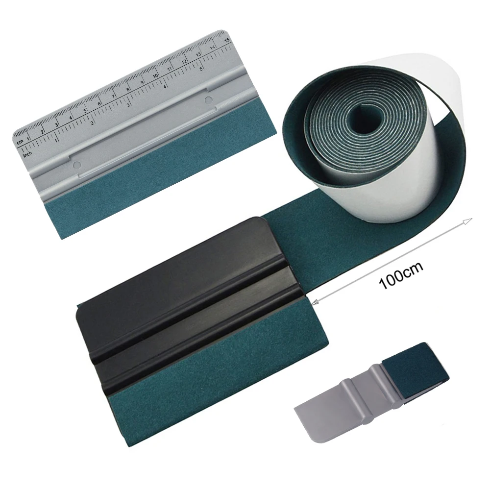 FOSHIO 100cm Suede Felt Tape Cloth Carbon Fiber Wrapping Vinyl Squeegee No Scratch Glass Tint Plastic Scraper Cleaning Car Tools