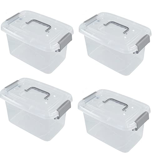 Fosly Scatola Portaoggetti con Coperchio, Contenitore in Plastica, Set di 4 Scatola Trasparente