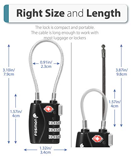 Fosmon Lucchetto cavo a combinazione 3 cifre accettato TSA per Valigia, Borsa da Viaggio, Armadietto o Zaino - Proteggi tutti i bagagli, Bicicletta, Cancello, Sconto, Lucchetto con Codice a 3 Cifre,