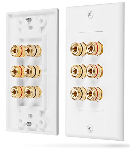 Fosmon [Triple Speaker] Home Theater Wall Plate - Premium Quality Gold Plated Copper Banana Binding Post Coupler Type Wall Plate for 3 Speakers (White)
