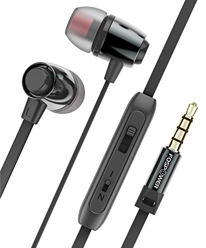 FosPower Cuffie Auricolari, Cuffie a Filo Piatto Senza Fodero da Parte, Auricolari di Isolamento Acustico con Microfono e Controllo Audio, Spina 3,5 mm TRRS - Nero