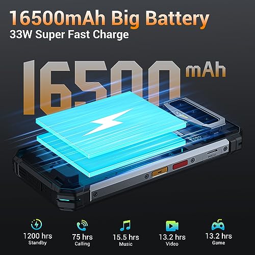 【16500 mAh &Carica rapida da 33W &OTG】Dotato di una grande batteria da 16500mAh, il telefono contactless FOSSIBOT F101 ha un tempo di standby fino a 1200 ore e un tempo di conversazione fino a 75 ore, per soddisfare le vostre esigenze di viaggio a lunga distanza. Con funzione di ricarica rapida da 33 W per una ricarica completa e veloce E supporta la funzione OTG, è possibile utilizzarlo come banca di potere.