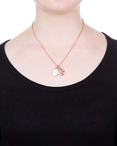 Catena in acciaio inossidabile in finitura lucida in oro rosa, elementi circolari in tonalità oro rosa con 1 cristallo trasparente e madreperla - Chiusura a moschettone
