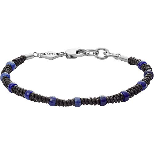 Questo braccialetto di perline presenta perline di sodalite, acciaio inossidabile color argento e chiusura a moschettone.
