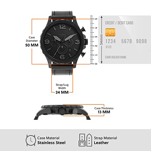 Fossil Orologio da uomo Nate, Misura Cassa 50mm, Movimento Cronografo al Quarzo con Cinturino in Vera Pelle